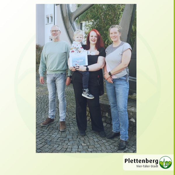 Im Rathaus überreichten Winfrid Schulte und Mareike Masuch am Montag (9.3.2026) gemeinsam den entsprechenden Gutschein des PTV. Florian und Christina König freuten sich sehr darüber.