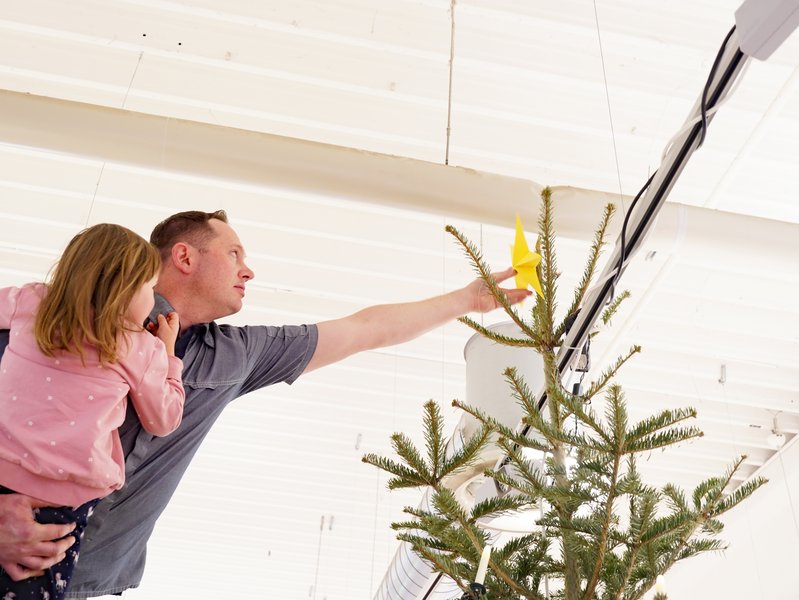 In diesem Fall ist der Vater, Michael Butz, Filialleiter eines Supermarktes an der Ziegelstraße in Plettenberg. Dort hat er im Eingangsbereich einen schönen großen Weihnachtsbaum aufgestellt, doch stand dieser bis vergangenen Donnerstag (04.12.25) noch ohne Schmuck da.